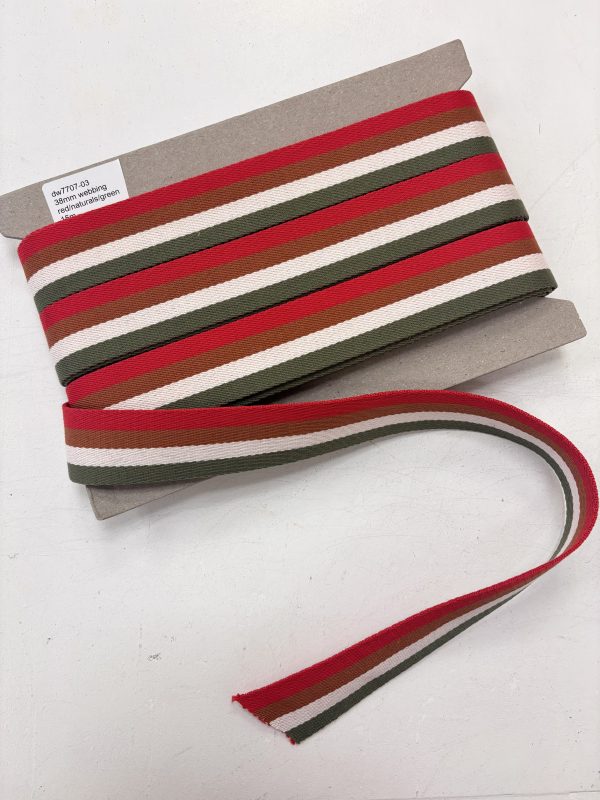 38mm Webbing for Bag Straps – Red, Naturals and Green