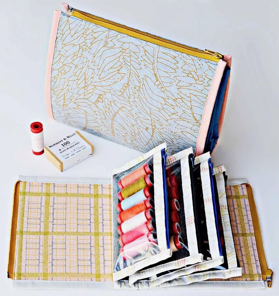 This is a pouch containing 4 individual pouches to keep your work-in-progress projects in. It keeps them together and tidy. There are 4 zips to put in but they are easy to do so don’t let that put you off! You’ll be helped every step of the way.