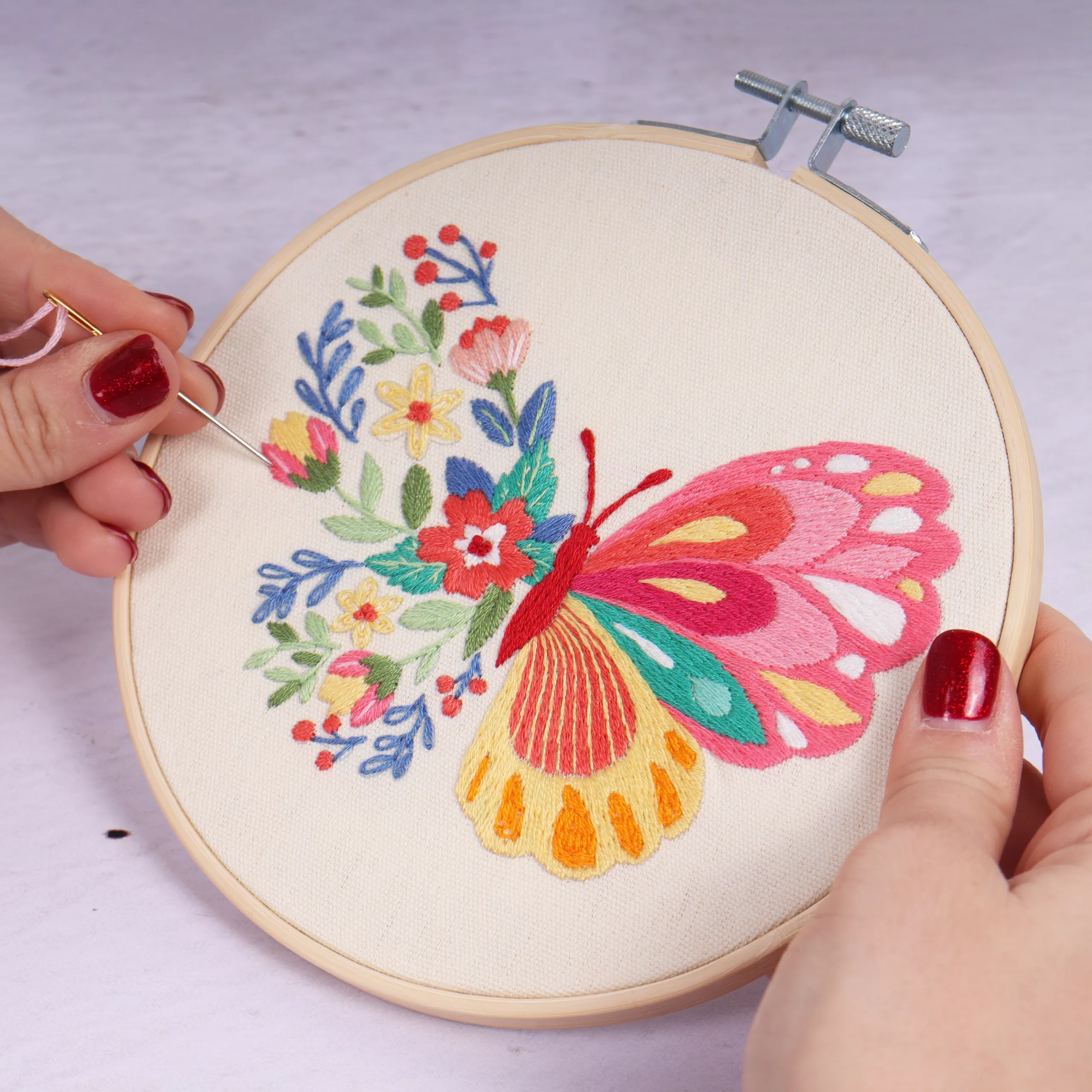 • These embroidery hoop kits from Trimits are a great introduction to different embroidery stitches and techniques and include everything you need to create a finished design in hoop, which can be finished with a felt backing.