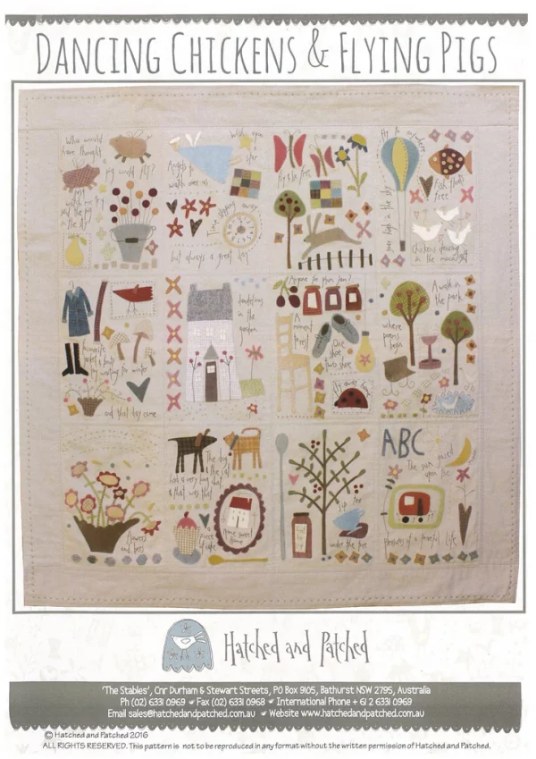 ‘Dancing Chickens and Flying Pigs’ is a Block of the Month or a straight pattern. This quilt has been set out as a 12 part Block-of-the-Month program concentrating on a whimsical journey of dreams and random thoughts.