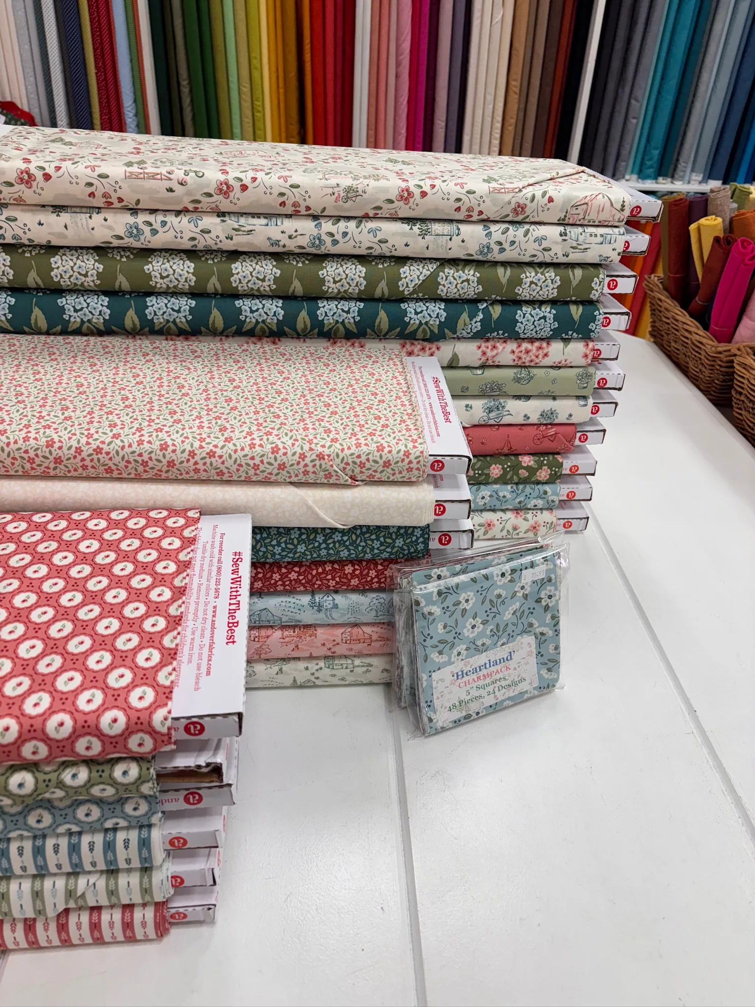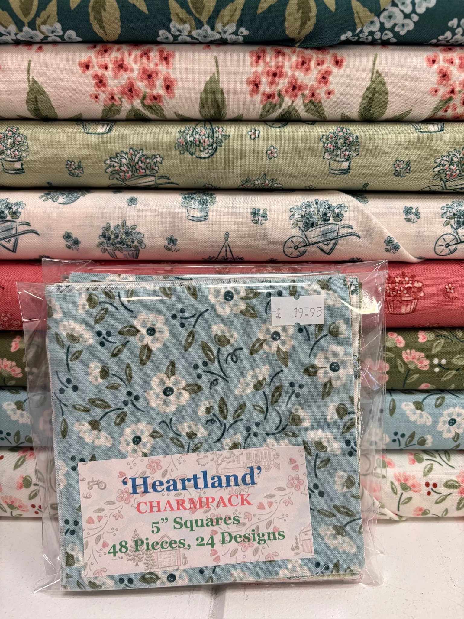 48 pieces, 5 inch squares in 24 different designs from the Heartland range designed by Judy Jarvi & Makower.