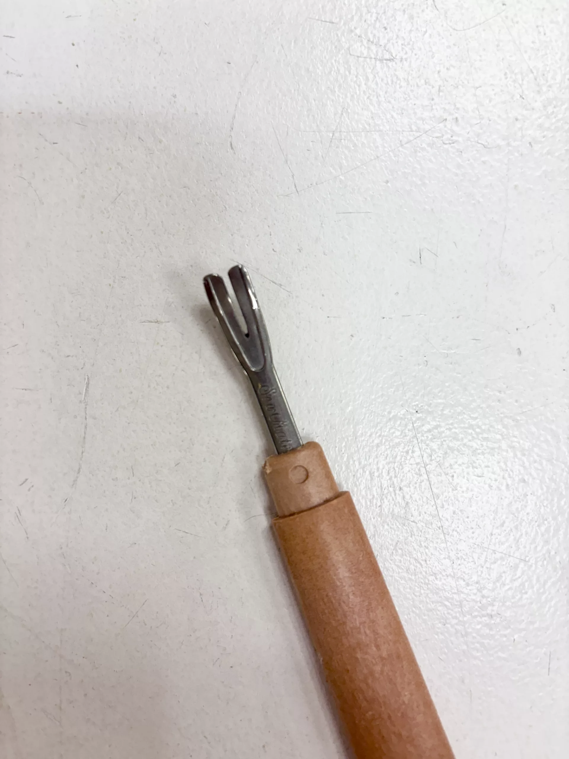Quickly and safely remove Microstitch tacks. Using scissors or normal unpickers can result in holes but this tool is only sharp at the very end of the indent meaning you can’t accidentally cut your fabric.