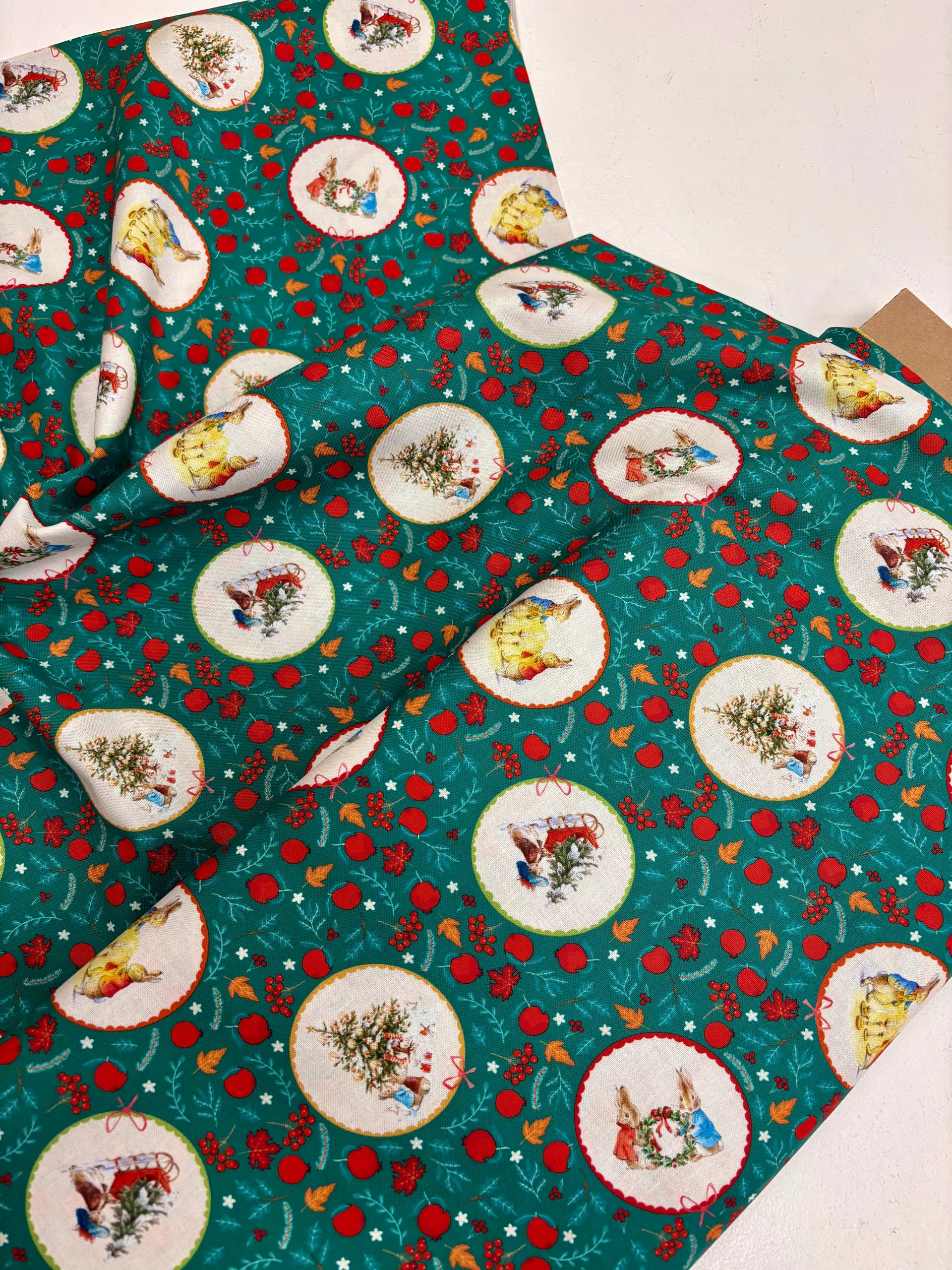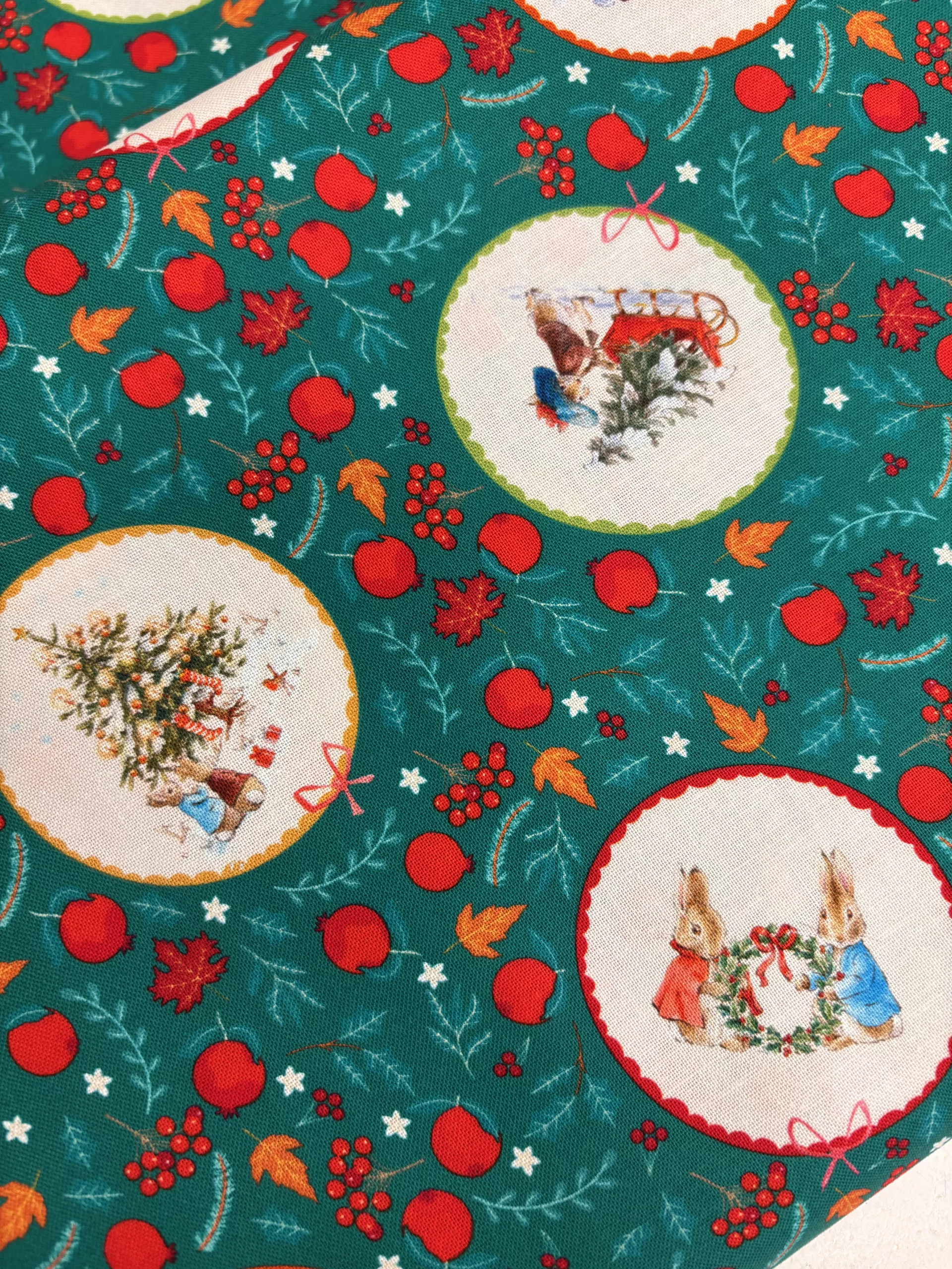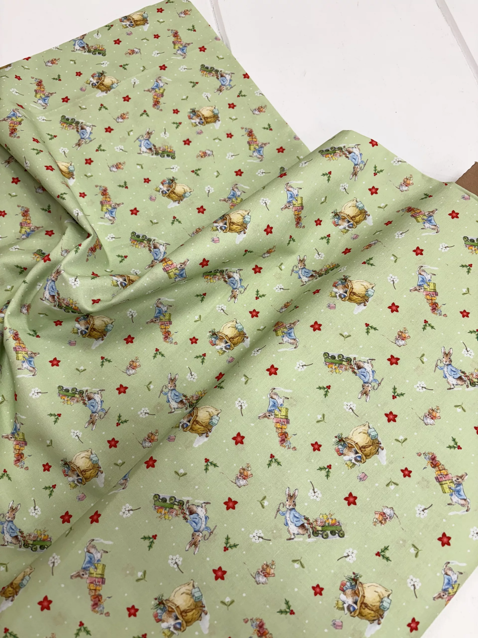 A sweet Christmas range from the Beatrix Potter archive featuring Peter Rabbit and his sisters in a cute festive print.
