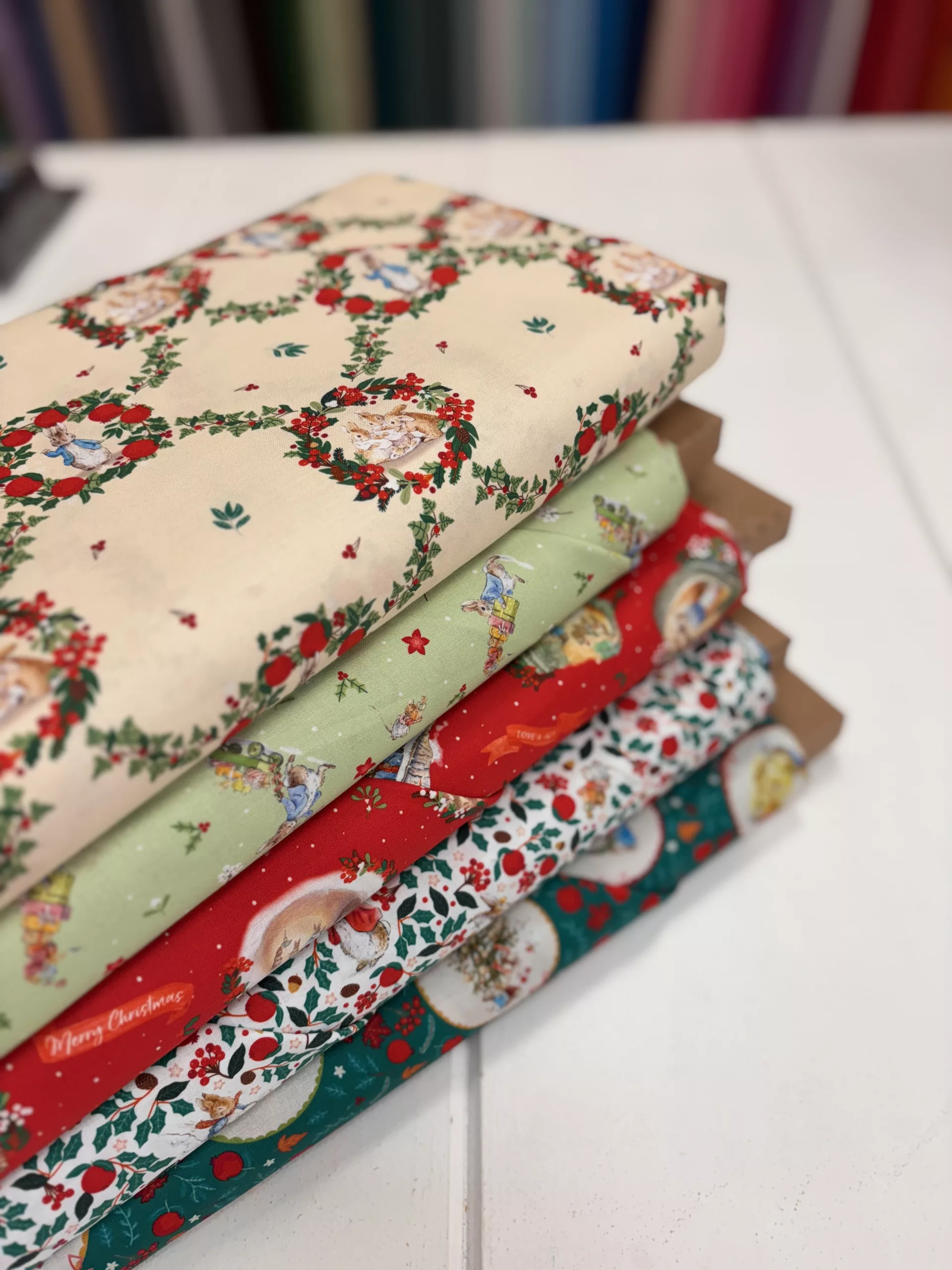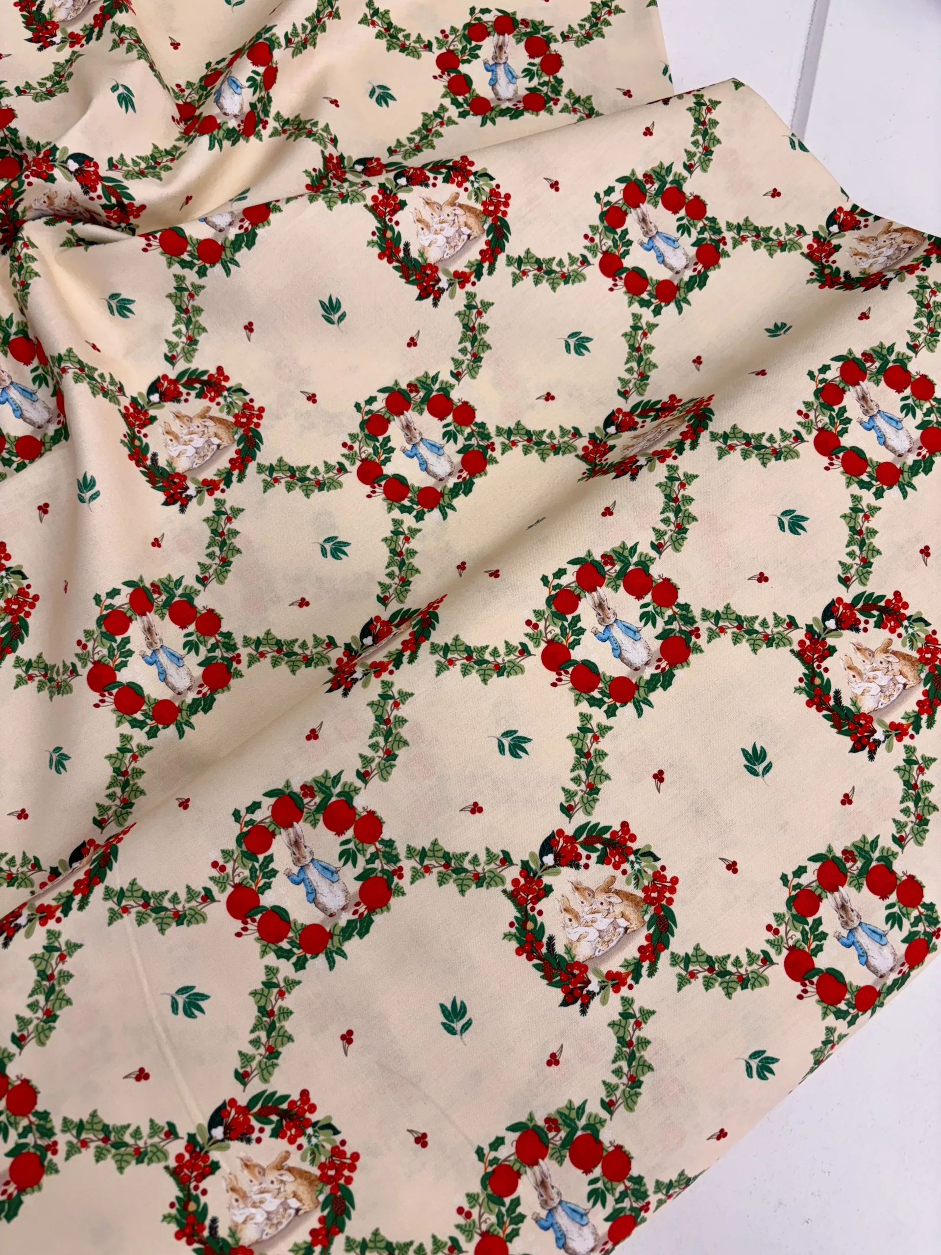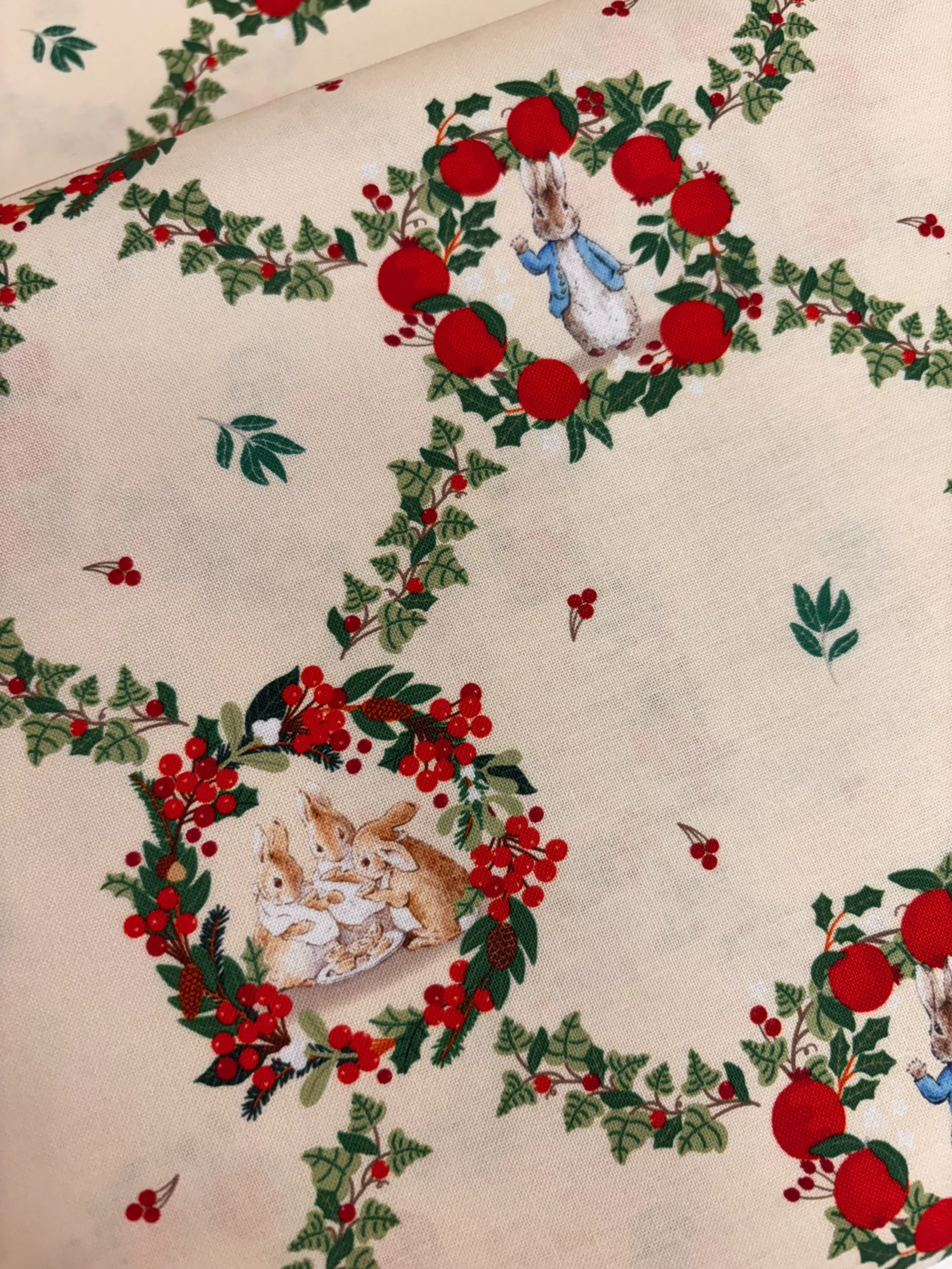 A sweet Christmas range from the Beatrix Potter archive featuring Peter Rabbit and his sisters in a cute festive print.