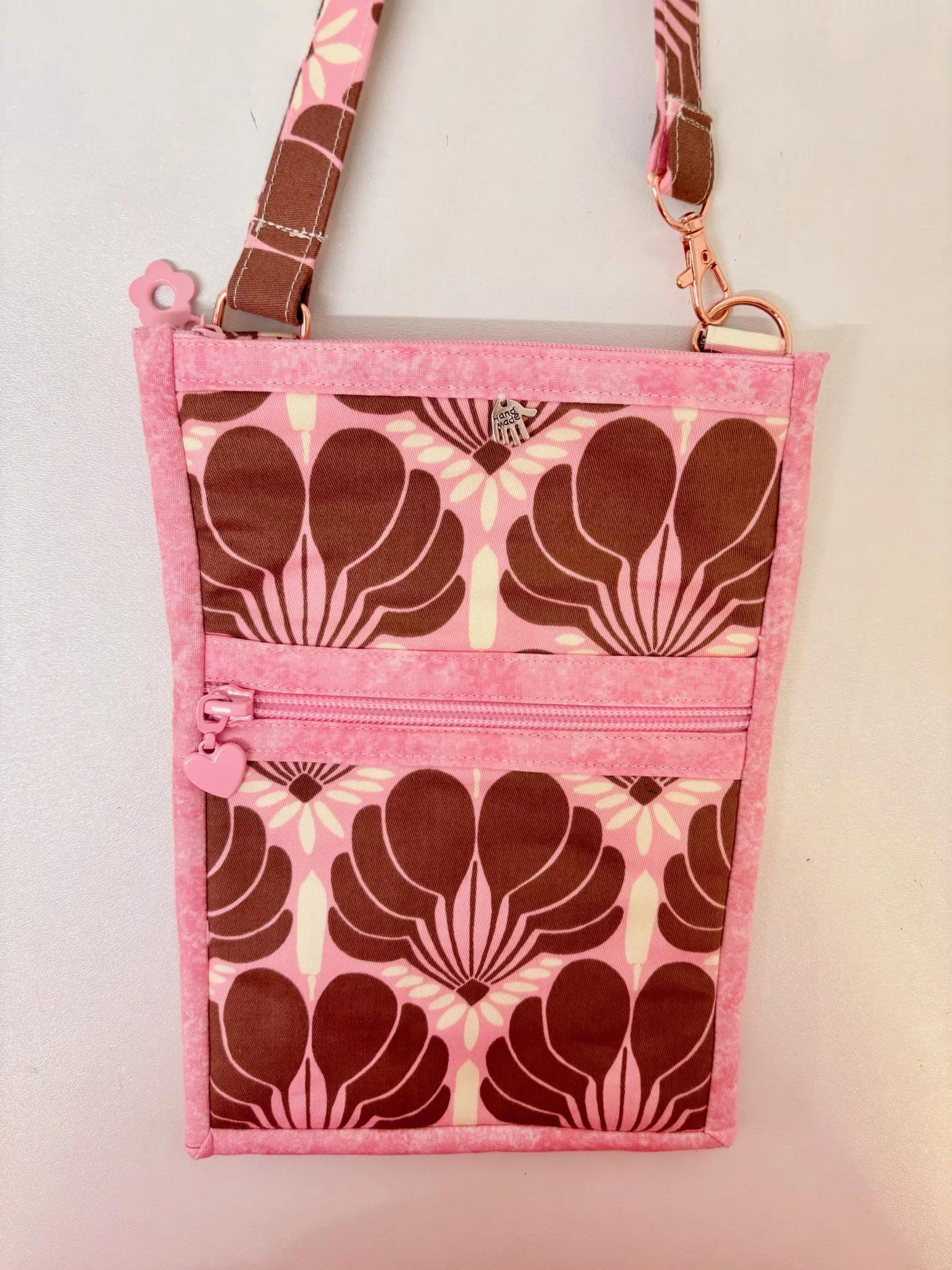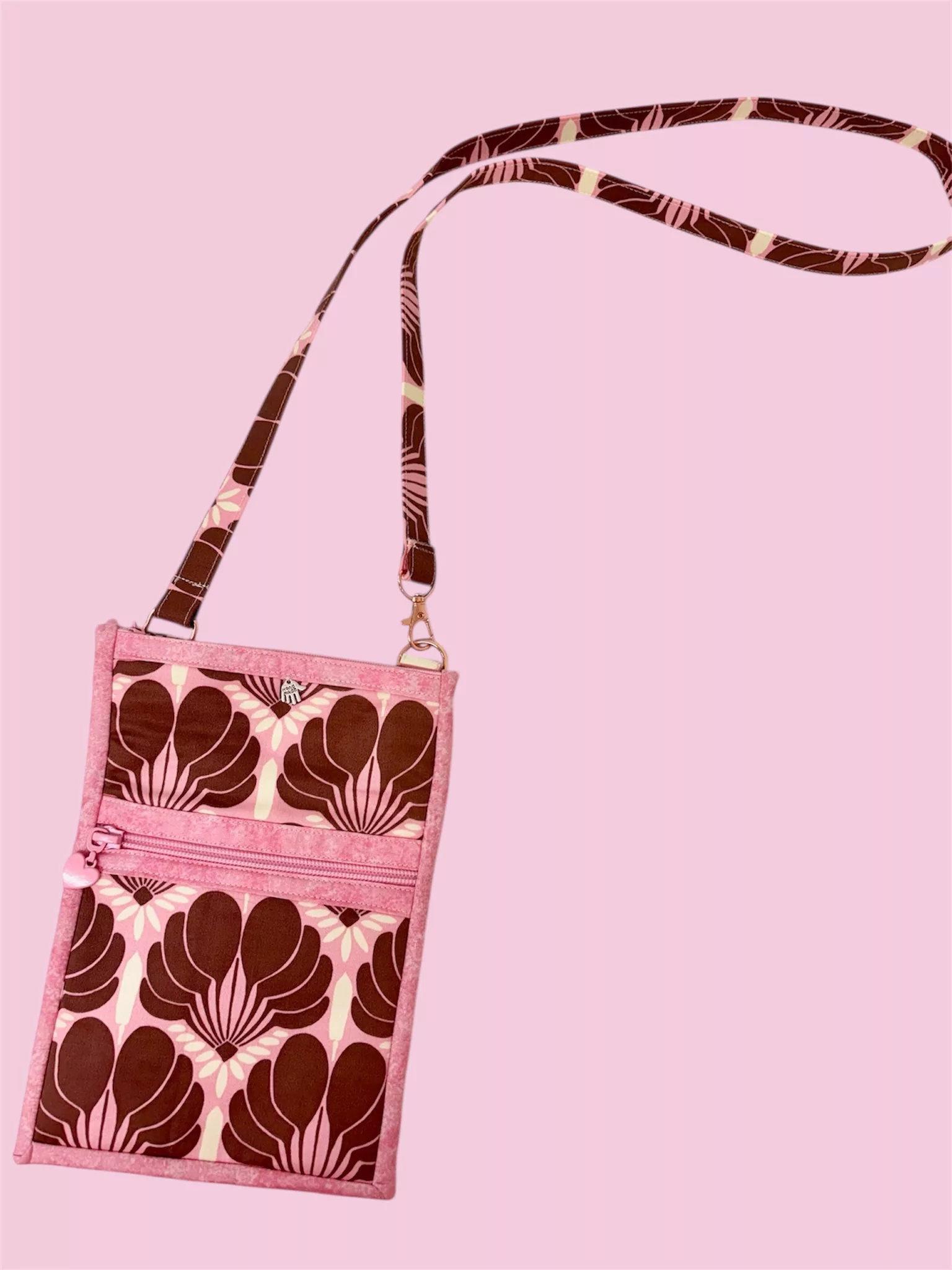 A Lovely bag pattern, designed by Myriam. Just enough space for your phone, a small purse and keys.