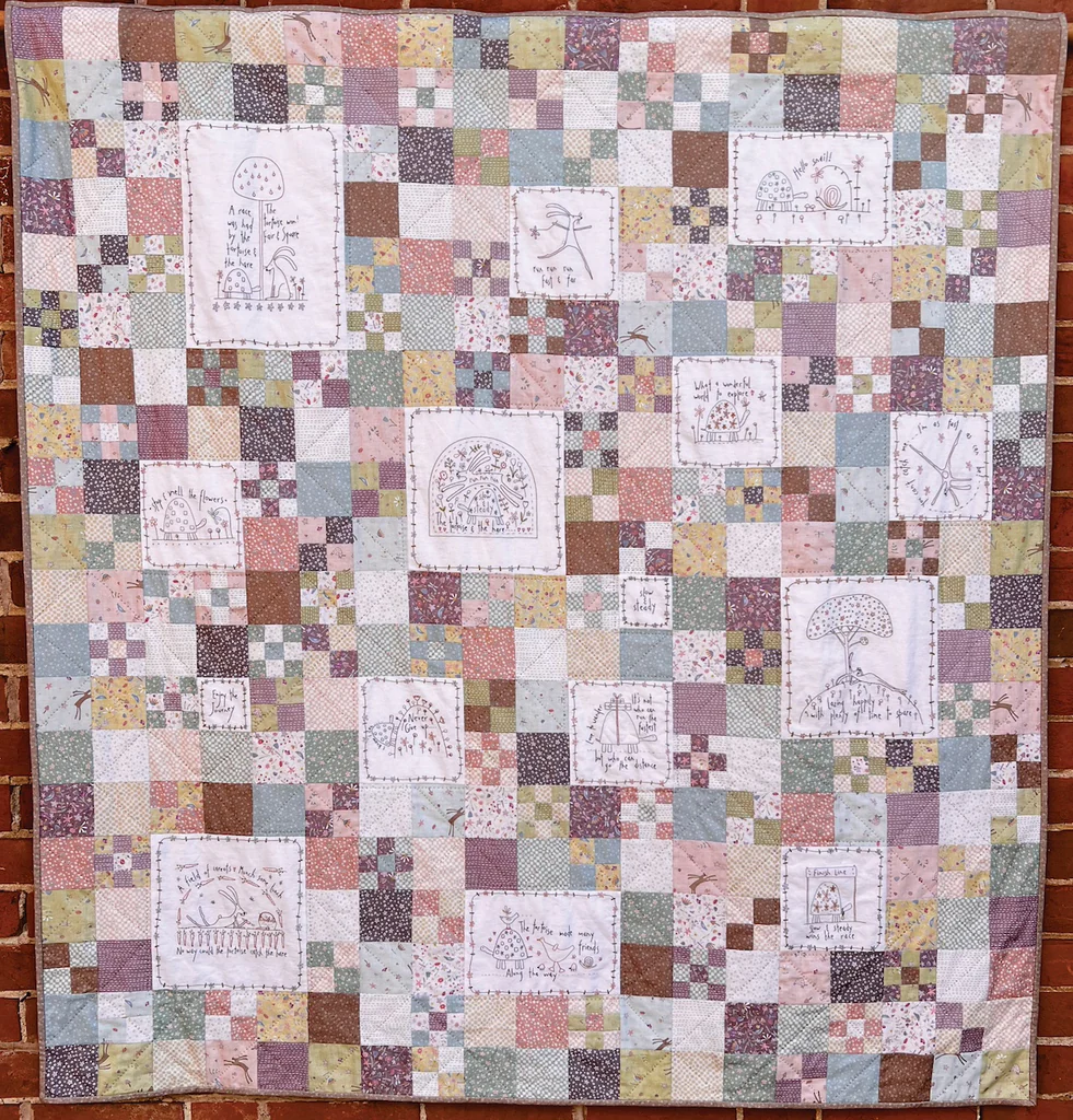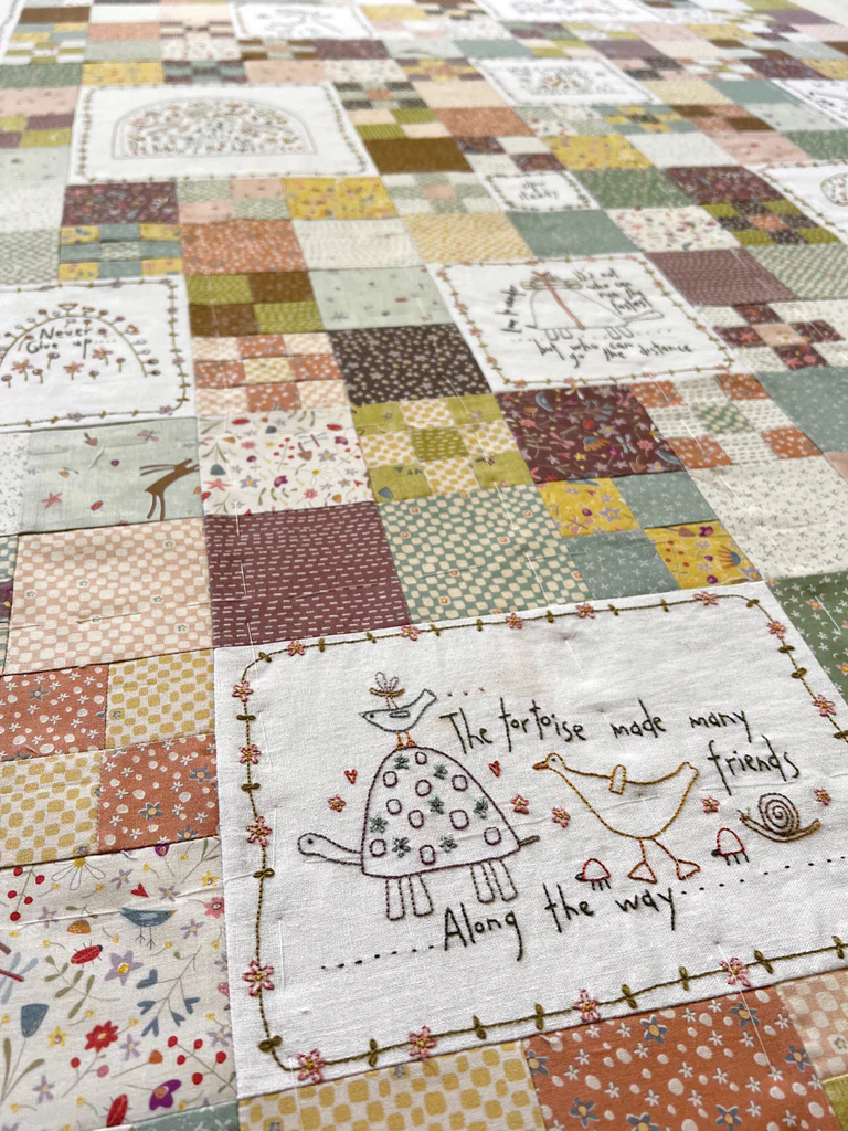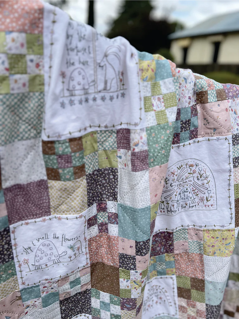 This quilt is a larger-format pattern and the kit has the pre-printed stitchery panel from the fabric range, so you can start stitching straight away!