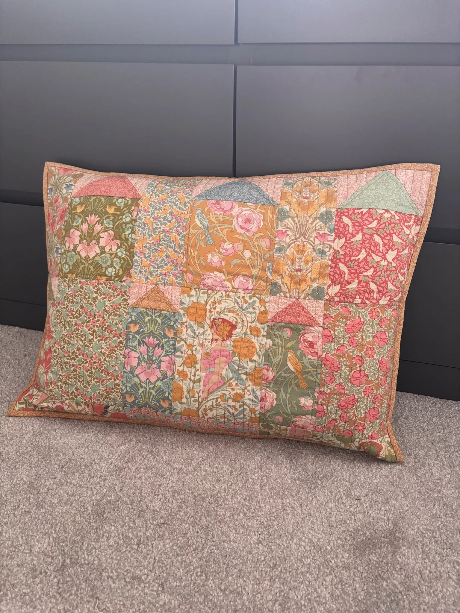 A perfect first project for beginners. We will cover; rotary cutting, accurate machine piecing, machine quilting, buttonholes and binding to make a gorgeous cushion to take home.