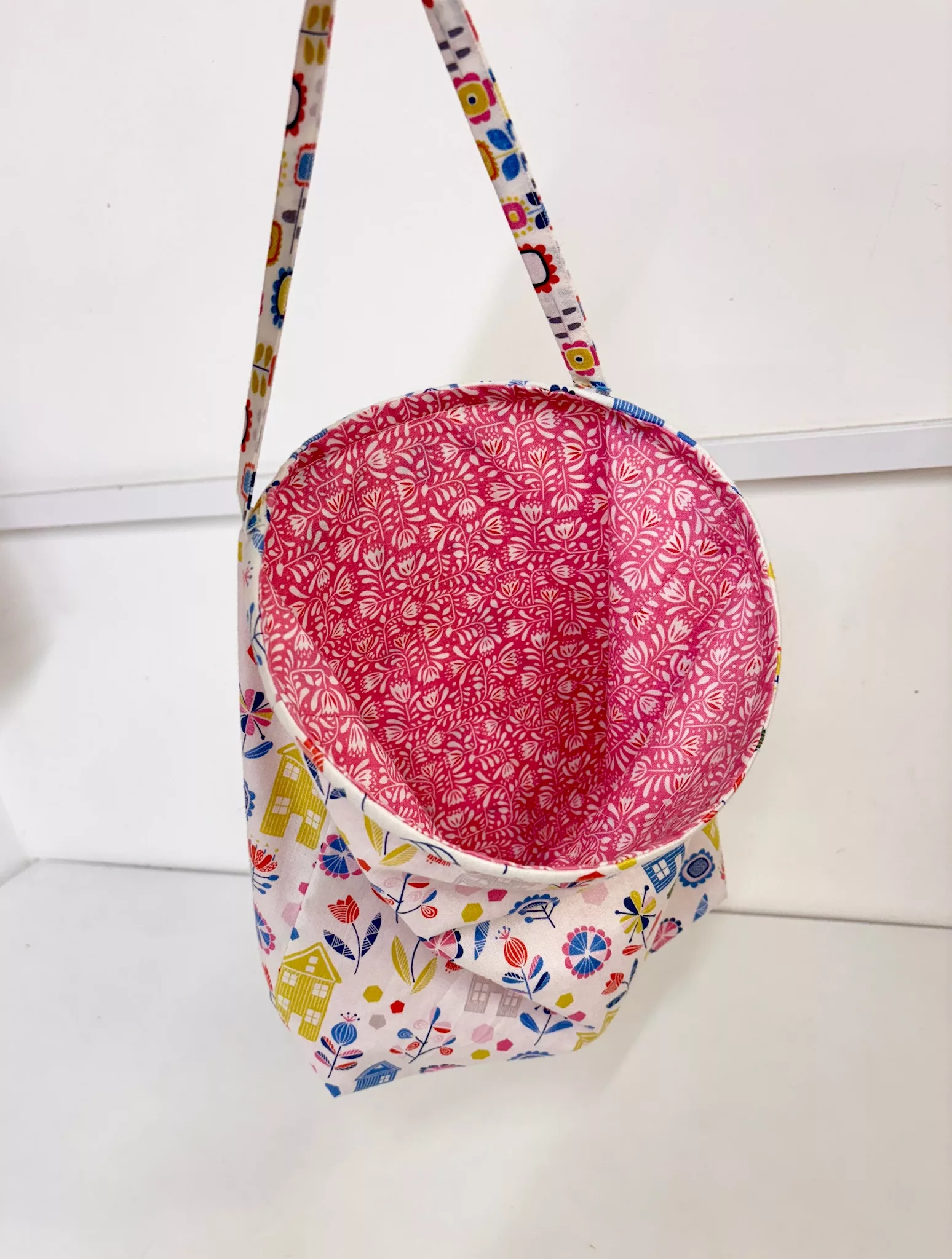 Handy to put all your little off-cuts of fabric and threads in while you are sewing. You will have seen these hanging from our work tables. It has boning in the top to keep it open. A Perspex base will be provided by us.
