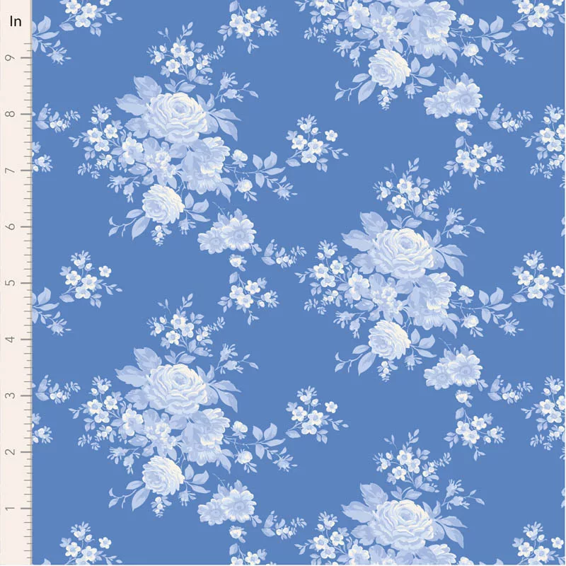 Something Blue has 15 different pattern designs, some repurposed and some new. Most of them are offered in dark-on-light and light-on-dark, to create two colorways. A fun addition to the main collection and blenders are the border fabrics, which allow you to create more realistic patchwork pottery. There is also a fun design with quilt labels and ornaments for decorations in two colorways.