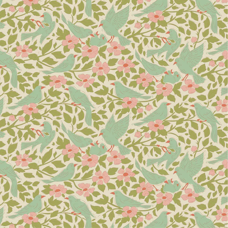 The hand-drawn patterns of Songbird are just a sweet nod to the more elaborate designs of Art Nouveau, but it has been fun to try to recreate the feel and look in a light, naiver way, especially in the Cora, Aubrey and Songbird designs.