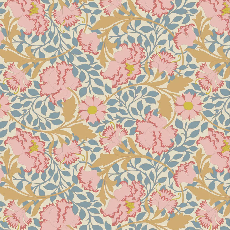 The colour palette has a light, dusty-pastel feel that is not typical for the 1900s, but I wanted to tone down the busy patterns and give the collection a soft watercolour-like effect.