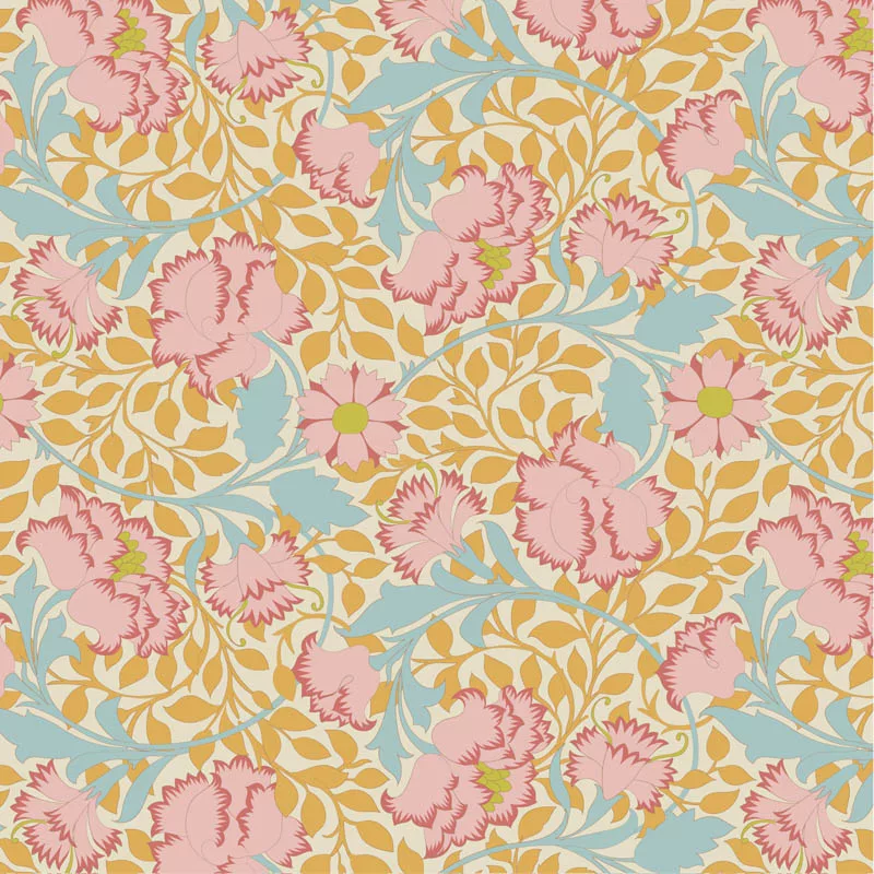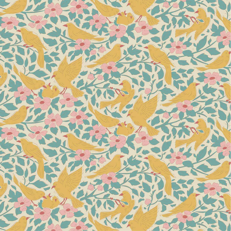 The hand-drawn patterns of Songbird are just a sweet nod to the more elaborate designs of Art Nouveau, but it has been fun to try to recreate the feel and look in a light, naiver way, especially in the Cora, Aubrey and Songbird designs.